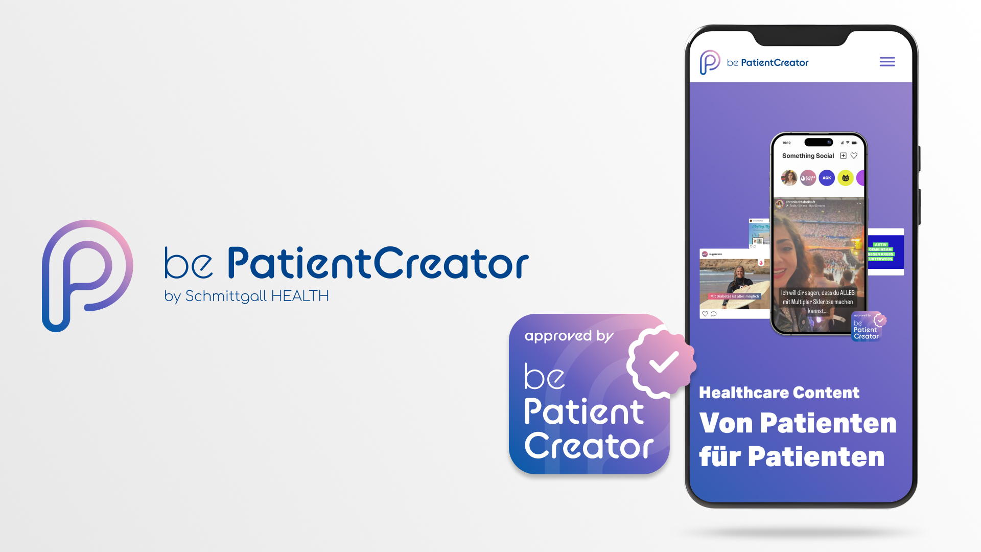 be PatientCreator ist eine Business Unit von Schmittgall HEALTH, die neue Standards für Creator und Social-First-Kampagnen setzt. Sie unterstützt Patient:innen-Influencer beim Aufbau ihrer Marke, steigert ihren Einfluss in der Community für gezieltes Patient-Empowerment und entwickelt gemeinsam mit Life-Science-Unternehmen authentische Social-First-Kampagnen. Um in den sozialen Medien zwischen Clickbait und Fake-News herauszustechen, zeichnet be PatientCreator die angeschlossenen Patient-Creator auf Basis geltender gesetzlicher Vorgaben sowie fachlicher und persönlicher Voraussetzungen mit einem Gütesiegel aus. Weitere Informationen finden Sie unter www.patientcreator.de