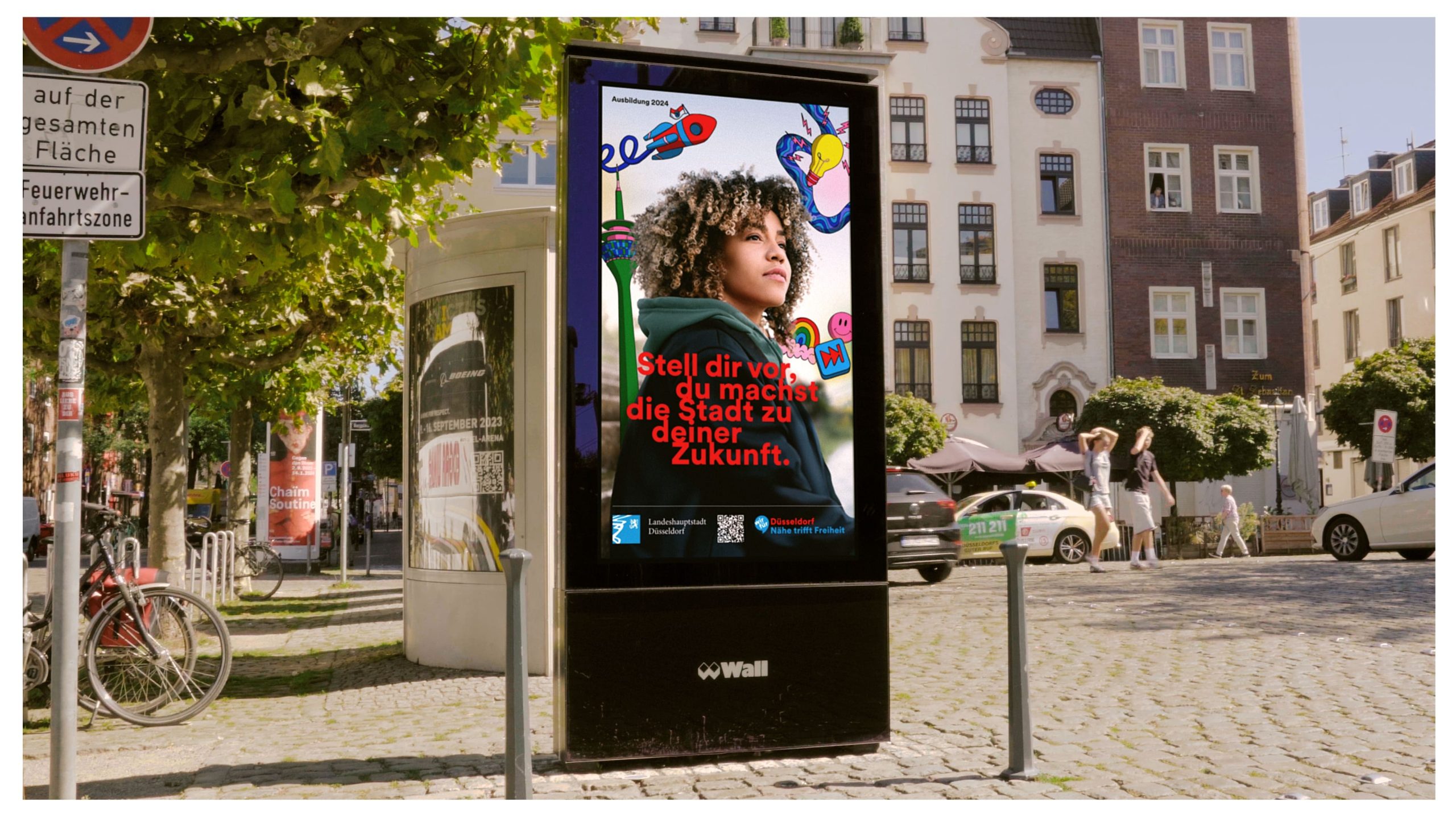 Die Wünsche der jüngeren Generationen nach Nachhaltigkeit und Sinn in einer Tätigkeit haben die Arbeitswelt in den vergangenen Jahren maßgeblich transformiert und neue Qualitätsmerkmale an Arbeitgebende adressiert. In „Stell dir vor“ trägt die Landeshauptstadt Düsseldorf diesem Anliegen nicht nur Rechnung, sondern lädt junge Talente zum persönlichen Gedankenexperiment ein. Dabei regt die Kampagne mit unterschiedlichen, visualisierten Vorstellungen dazu an, sich auszumalen, das Lebensumfeld von rund 630.000 Düsseldorfer:innen aktiv mitzugestalten, um für das Gemeinwohl einzutreten und einen sinnstiftenden Beitrag zu leisten.