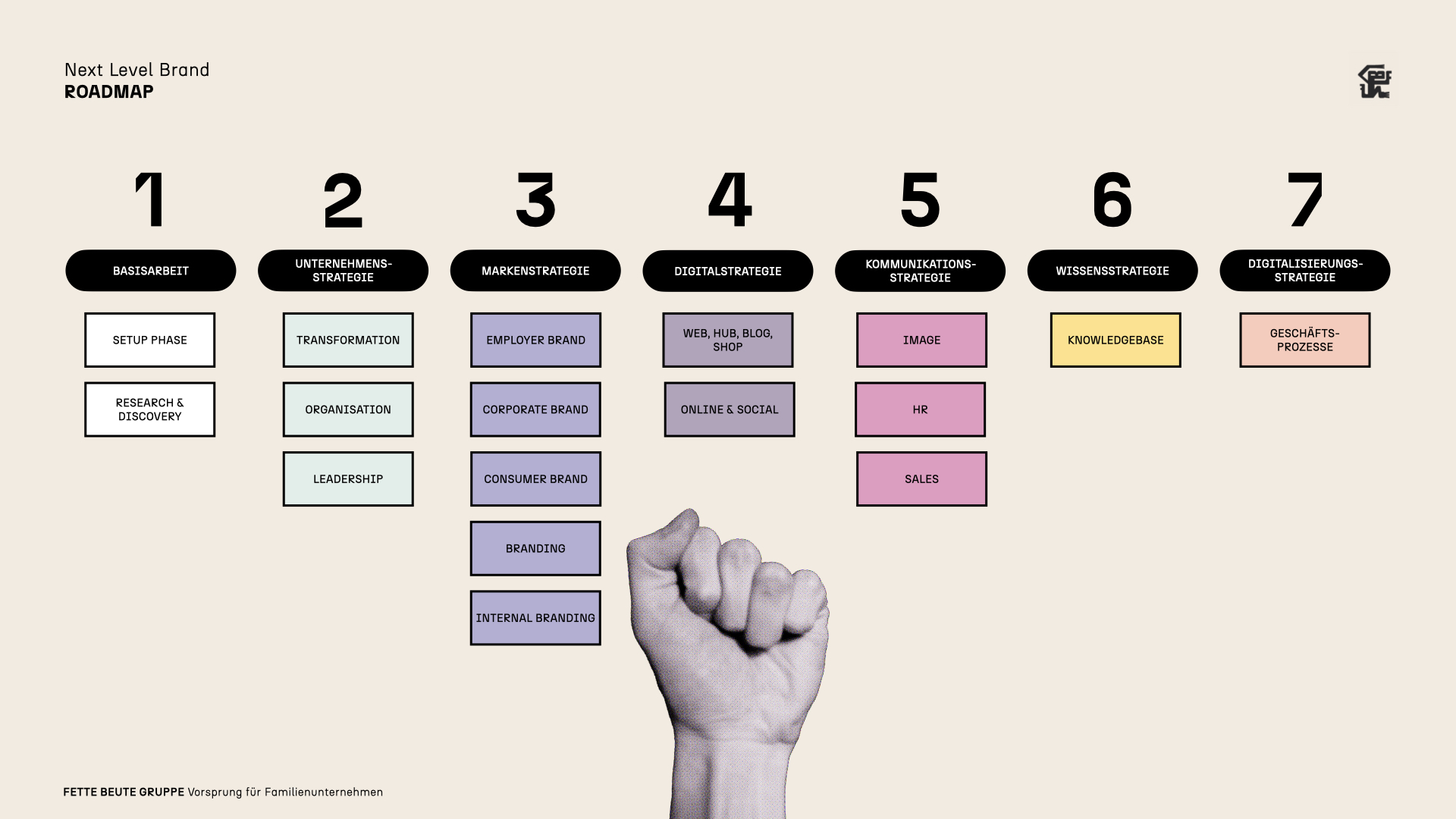 Meilensteine auf dem Weg in die Top 50 waren die Ausgründung einer Unternehmensberatung für Strategie, Organisationsentwicklung und Leadership unter dem Namen triljen, die Gründung einer weiteren Agentur in Düsseldorf, die Gründung der German Brand School, Deutschlands erster Markenakademie für Familienunternehmen und ein Büro in Schloss Seefeld vor den Toren Münchens mit Schwerpunkt auf Coaching und Beratung. Unter dem 2020 neu geschaffenen Holdingdach wurde zudem eine Servicegesellschaft etabliert, die alle operativen Einheiten in Finance, HR, IT und Administration unterstützt.