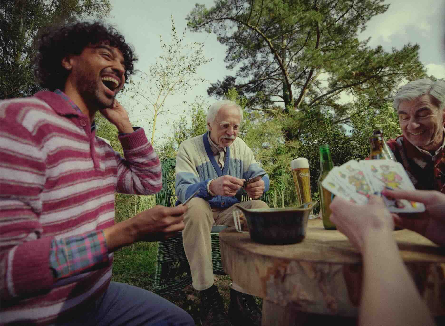 So zeigt der TV-Spot der Launchkampagne etwa ein generationsübergreifendes Beisammensein – vom Großvater bis zum Urenkel – bei dem Gösser als integratives Element erlebt wird. Die Inszenierung bleibt in der Natur verankert, ist aber weniger werblich und näher an der Lebensrealität der Menschen. Auch musikalisch schlägt die Kampagne neue Töne an: Der ikonische Gösser-Jingle erscheint in einem emotionalen Bigband-Arrangement.