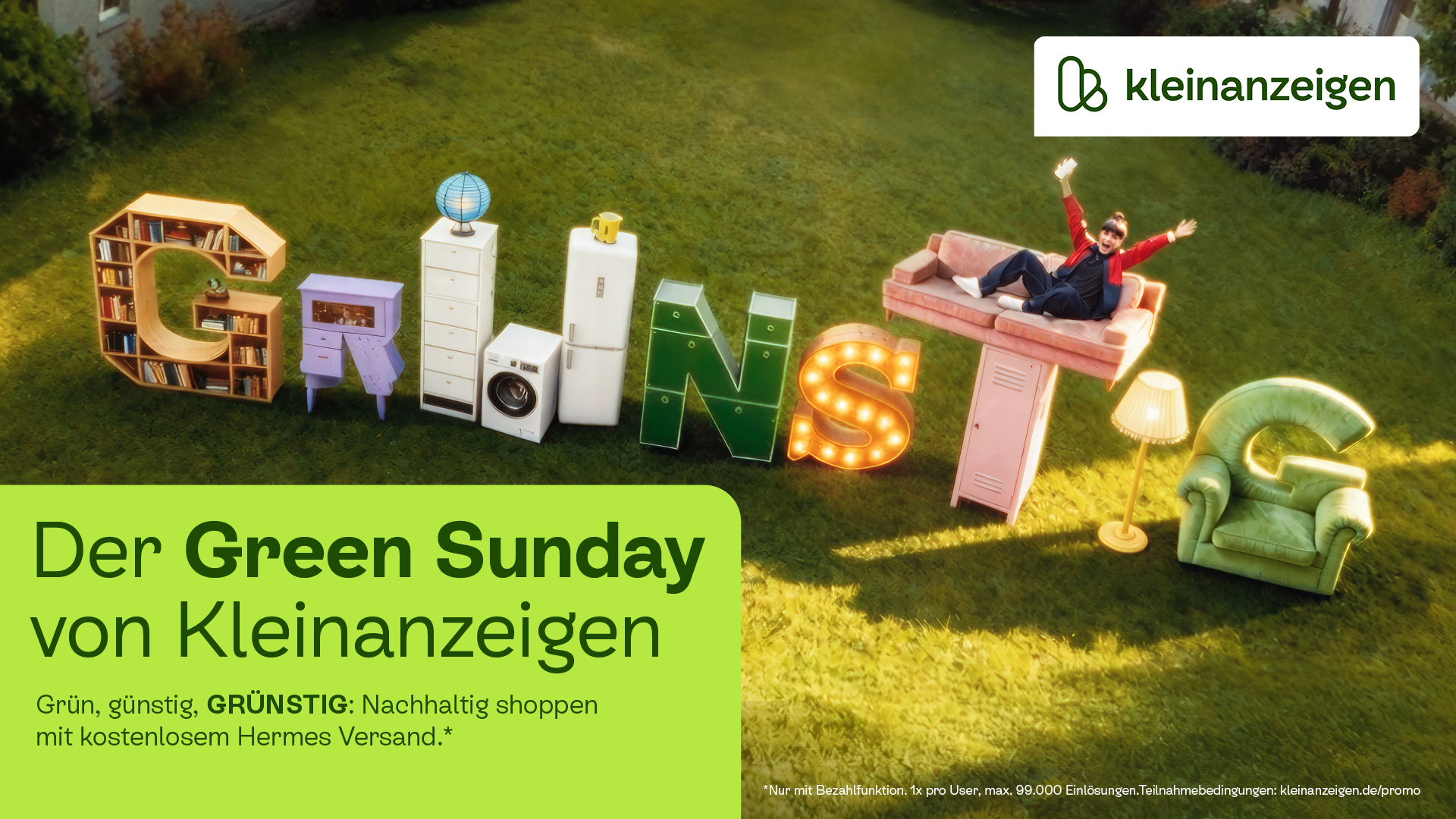 „Green Sunday“ ist mehr als nur eine Kampagne – es ist ein Statement. Der von The Goodwins entwickelte Shopping-Tag geht in sein fünftes Jahr und hat sich als feste Größe im Kalender nachhaltiger Konsum-Events etabliert. Um den Nachhaltigkeitsgedanken zu unterstreichen, bietet Kleinanzeigen in diesem Jahr in Zusammenarbeit mit Hermes Germany kostenlosen Versand für alle Käufe und Verkäufe während des Aktionszeitraums.