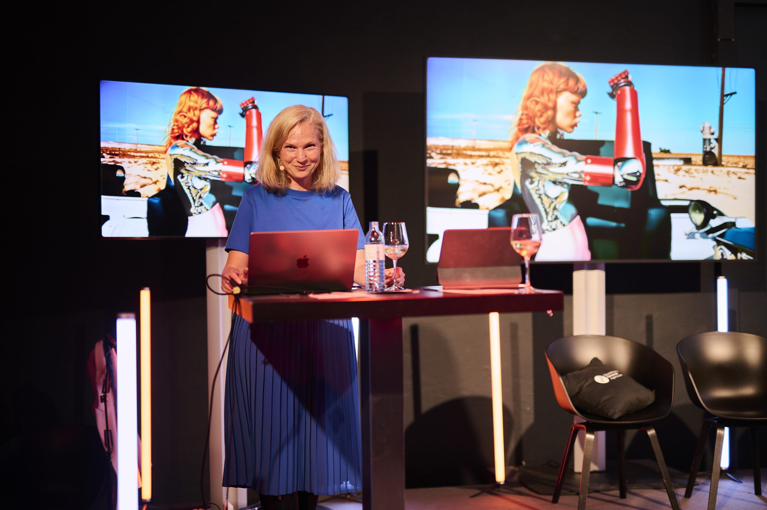 Mieke Haase, CCO und Mitgründerin der Kreativagentur LOVED (Teil des WPP-Netzwerks), stellt ihr digitales Alter Ego vor: Namae Koi – eine AAVA (Artificial Audiovisual Artist), zugleich Künstlerin, Muse, Modell und Musikerin. Sie erzählt von Identität, Intimität und kreativer Selbstspiegelung – im Anschluss Release ihrer neuen Single als Silent Disco, eine Kollaboration mit DJ Hell: „U can dance with me“ – Namae Koi x DJ Hell.